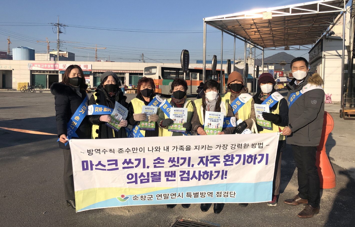 - 순창군자원봉사종합센터(소장 김삼순)는 지난 6일 순창전통시장 일원에서 주민 및 상가를 대상으로 코로나19 확산 방지를 위한 방역지침 준수 실천문화 캠페인을 실시했다. 이날 캠페인은 전국적으로 코로나19 확산세가 지속됨에 따라 방역지침 준수 등 적극적인 참여와 동참이 더욱 필요함에 따른 것으로, 나눔봉사단(회장 김숙자) 자원봉사자들이 모여 코로나19 홍보물(방역패스)과 마스크, 손소독제를 배부하면서 안전수칙 준수를 호소했다. 김삼순 자원봉사센터 소장은 “2022년 새해가 밝았지만 여전히 코로나19는 우리의 일상회복을 막고 있어 안타깝게 생각한다. ”면서 “이번 캠페인을 통해 자원봉사자와 이웃의 안부를 묻고 소통할 수 있는 기회로 삼고 앞으로 보다 철저히 코로나 극복 사전대응을 펼쳐 안전하고 건강한 순창을 만들 수 있도록 자원봉사센터가 늘 함께하겠다. ”고 밝혔다.