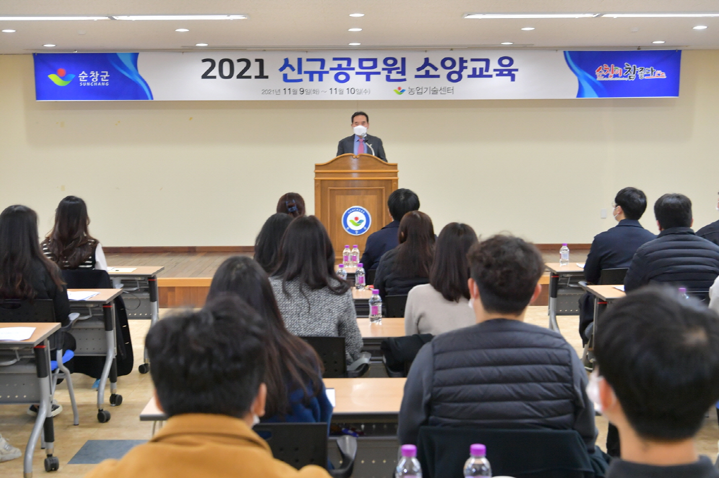 - 순창군이 올해 임용된 49명의 신규공무원을 대상으로 11월 9일부터 10일까지 이틀간 농업기술센터 2층 다목적강당에서 직무교육을 진행했다. 이번 교육은 신규 공무원으로서 갖춰야 할 기본자세와 직무 이해 향상 및 교육을 통한 소통과 공감, 팀워크, 자기계발 역량강화 등을 높여 공직사회 적응력을 높이기 위해 추진됐다. 첫날은 신규 공직자가 꼭 알아야 할 실무지식을 각 분야 주요 담당계장이 직접 강사로 나서 설명하는 방식으로, 신규 공무원들이 공직에 대해 이해하고 업무를 처리하는 데 큰 도움을 줬다. 먼저 ‘기획,보고서 작성방법’에 대해 이영종 기획계장의 강의를 시작으로, ‘국가예산확보 및 예산실무’에 이석기 예산계장이, 공무원의 의무.금지사항에 관해 김윤석 감사법무계장이 강의를 이어갔다. 또 이태호 경리계장의 ‘회계실무’, 오정곤 행정계장의 ‘인사,조직실무’, 김희정 서무계장의 ‘공무원 복무관리’와 조명훈 공무원노조지부장의 ‘공무원 노조관리’를 끝으로 강의를 마쳤다. 둘째 날에는 위탁기관에서 ‘팀 가교 역할 및 소통과 성과’, ‘직장근무 예절매너와 친절교육’, ‘인문학 특강’, ‘비젼 드로잉 팝아트’ 체험학습 등의 시간을 가졌다. 특히 황숙주 순창군수가 첫 강의로 ‘신규 공무원이 가져야 할 공직관’에 대한 특강을 진행해 높은 관심을 받았다. 황 군수는 “정직과 신뢰를 바탕으로, 공명정대를 실천해 군민에게 신뢰와 감동을 주는 공직자가 되어 달라”고 당부하면서, “깊은 통찰력과 창의적인 아이디어로 군정발전에 접목할 정책을 발굴하는 것도 매우 중요하다”고 강조했다. 교육에 참여한 신규 직원은 “공무원으로서 알아야 할 업무의 기초를 폭넓게 접할 수 있었고, 선배님들의 공직생활 노하우를 배울 수 있어 좋았다”는 소감을 밝혔다. 한편, 군은 이번 교육을 계기로 신규 공무원들이 공직 생활을 더욱 빠르게 적응하고 순창군의 미래를 이끌어 나갈 주역이 될 것으로 기대하고 있다고 밝혔다.