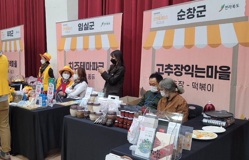 - 순창군이 지난 12일과 13일 이틀간 김제 국립청소년농생명센터에서 단계적 일상회복에 맞춰 ‘K-글로팜 마켓플레이스’에 참가해 농촌 체험관광과 주요 관광지를 홍보했다. 이번 행사는 도내 시군의 구석구석을 다니면서 안전하고 청정한 자원을 소재로 하여 체험거리를 발굴, 여행 상품화를 통해 온.오프라인으로 국내외로 홍보하기 위해 마련했다. 23개국 56명 인플루언서, 관광전문가 14명 그리고 각 시군 관광담당자 등을 시군별로 편성하여 시군 대표 체험관광을 진행한다. 중국과 말레이시아 현지 여행사 및 국내 외국인 관광객 유치 여행사 등은 온라인으로 이번 행사를 시청하면서 여행상품에 대한 상담회도 실시했다. 순창군은 고추장 익는 마을 관계자와 함께 외국 인플루언서를 대상으로 고추장 만들기와 떡볶이 만들기 체험을 진행했으며, 최근 K-푸드에 대한 높은 관심 때문인지 많은 호응을 얻었다. 또한 호남의 소금강이라 불리는 강천산, 채계산 출렁다리, 고추장 민속마을 등 주요 관광지가 미식체험과 함께 힐링여행을 할 수 있는 곳으로 참여자들의 눈도장을 찍었다. 순창군 노홍균 문화관광과장은 “이번 행사를 통해 많은 관광객들이 순창군의 농촌 체험관광을 알게 되는 계기가 되었길 바란다”면서 “순창군을 방문하여 지역경제 활성화로 이어지길 기대한다”고 말했다.