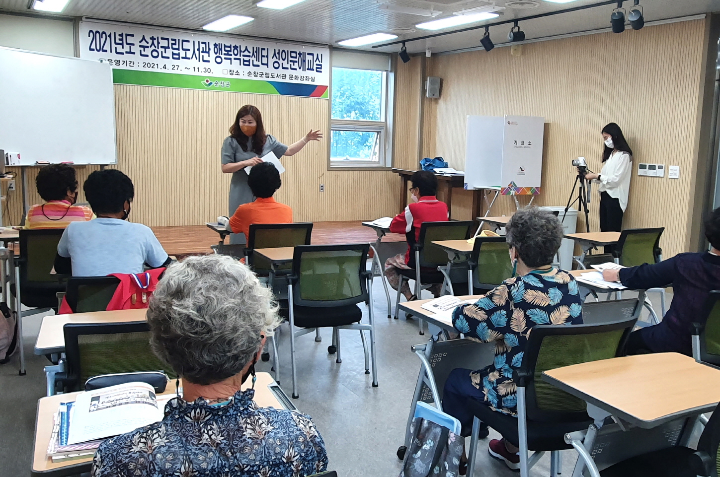 - 순창군이 지난 16일 군립도서관에서 성인문해교육 학습자 10여명을 대상으로 민주시민 선거교육을 실시했다고 밝혔다. 이번 교육은 전라북도선거관리위원회와 전라북도인재평생교육진흥원이 지난 4월 성인문해학습자의 선거에 대한 관심과 민주시민의식 함양을 위해 체결한 협약에 의해 이뤄졌다. 교육은 성인문해교육 학습자들이 선거과정을 보다 쉽게 이해할 수 있도록 만들어진 ‘처음 읽는 선거’교재를 활용한 이론 교육과 선거 모의체험 교육으로 구성되어 학습자들이 선거에 대한 관심도와 이해도를 높였다. 이번 교육에 참여한 한 어르신은 “한글을 몰라 불편했던 점이 한 두가지가 아니었는데 공부를 하면서 생활의 불편함을 해소해 가고 있다”면서 “오늘 선거교육도 매우 유익해 내년 선거를 잘 치를 수 있을 것 같다”라고 말했다. 순창군 김민주 교육지원계장은 “올해부터 군에서 직접 성인문해강사를 채용해 군립도서관 등 5곳에서 성인문해교육이 활발히 진행되고 있다”면서 “앞으로도 경제적 어려움으로 배움의 시기를 놓친 어르신들을 위해 교육을 확대할 계획이므로 관심 있는 성인학습자들의 많은 참여를 바란다”고 밝혔다.