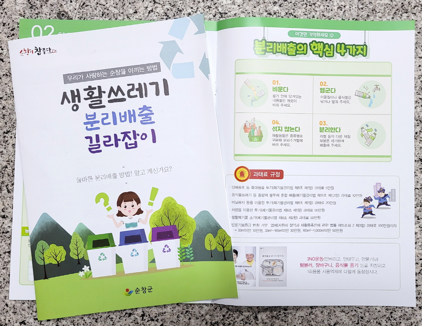 - 순창군은 올바른 생활쓰레기 분리배출 정착을 위해 주민들에게 생활쓰레기 분리배출 방법이 담긴 책자 1만 3,000부를 제작해 주민들에게 배부한다. 군은 생활쓰레기 배출방법 인식 부재로 그동안 불법투기가 지속적으로 발생되고 있는 가운데 올바른 생활쓰레기 배출문화 정착으로 쾌적한 생활환경을 조성하기 위해 이번에 홍보물을 제작하게 됐다고 밝혔다. 주요내용은 재활용 가능 품목별 배출 방법, 청소시책, 분리배출의 핵심 4가지와 과태료 규정 등이다. 생활폐기물 분리배출 방법에 따르면 재활용이 가능한 플라스틱 용기는 내용물을 비우고 헹군 후 배출해야 하며, 택배 박스 등은 송장과 테이프 등 부착을 제거하고 배출해야 재활용이 가능하다. 특히 지난해 12월 25일부터 전국 의무관리대상 공동주택을 대상으로 ‘투명페트병 별도 분리배출 제도’가 시행되어 관내 공동주택에 거주하는 군민들은 투명 페트병에 부착된 라벨지를 제거하고, 다른 플라스틱과 혼합되지 않도록 별도로 배출해야한다. 또한 가구류와 책상류, 침대 매트리스, 장판 등 쓰레기봉투에 들어가지 않는 대형폐기물은 해당 읍·면 행정복지센터에 신고하여 수수료를 납부 후 스티커를 부착해 지정장소에 배출해야 한다. TV, 냉장고, 세탁기 등 폐가전제품 등은 무상수거업체(☎ 1599-0903)를 이용하도록 하는 등 주민들이 궁금해하는 사항들도 책자에 담았다. 신인수 환경수도과장은“생활쓰레기 분리배출을 철저히 하면 쓰레기 처리비용을 감소시키고 자원을 절약하는 일석이조의 효과를 얻을 수 있다”면서 “이번 생활쓰레기 분리배출 책자를 통해 주민들의 환경의식을 높이고 올바른 쓰레기 배출 습관을 기를 수 있을 것으로 기대된다”고 말했다.