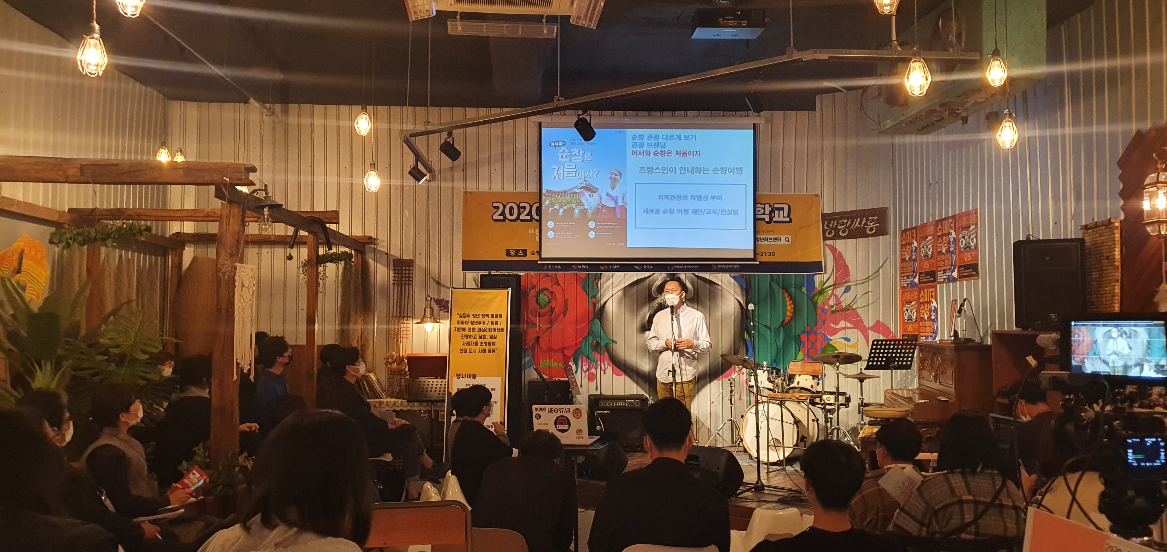 - 순창군이 최근 문화공간 방랑싸롱에서 ‘2020 찾아가는 청년정책 소통학교’를 추진했다. 청년정책 소통학교는 순창군과 전북청년허브센터((재)전북창조경제혁신센터) 중심으로 남원시와 임실군이 함께 참여했으며, 지역 청년들 간 커뮤니티 활성화를 위해 각 청년단체, 청년창업가, 지역청년, 청년정책 담당자 등 50여 명이 참석했다. 이 행사는 순창의 싱어송라이터인 페이지(이덕현, 김관우)의 라이브 공연을 시작으로 순창군 BOVO문화연구소 장재영 대표, 남원시 놀자랩의 서진희 대표, 임실군 심다은 농업경영인 등 각 지역의 청년활동 사례에 대한 발표가 진행됐다. 또한 청년주거·청년농업·청년지원 3개 분야를 토의 주제로 정하여, 청년들이 원하는 정책을 자유롭게 발굴하고 공유할 수 있도록 분임별로 의견 수렴하고, 발표하는 시간도 가졌다. 이번 동남권 청년정책 소통학교는 지난 8일 동북권(장수군) 운영 이후 두 번째로 추진되었으며, 서남권(부안군), 새만금권(군산시), 기타권역(전주․완주) 행사 등이 순차적으로 진행될 예정이다. 군 관계자는 “이번 행사는 코로나19로 인해 소규모로 진행되었으나, 인근 지역에서 활동하는 지역 청년들 간 소통을 위한 커뮤니티를 활성화하는데 의의가 있다”며, “지역 청년들의 정책 참여를 위한 다양한 사업을 꾸준히 발굴하고 실시하겠다.”고 말했다. 전북청년허브센터 박광진 센터장은 “권역별 청년정책 소통학교의 순차적 운영을 통해 지역청년과 소통하며 청년들의 청년정책 이해도를 높이고 정책 제안 역량을 지속적으로 강화해 나가겠다.”고 말했다.