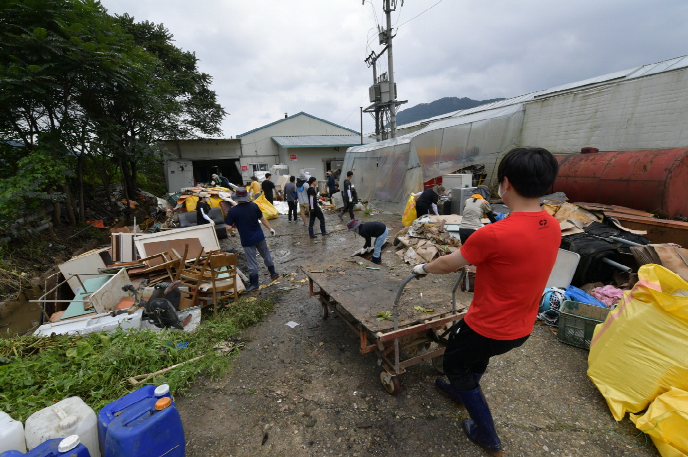 - 민간 자원봉사자 도움으로, 수해 복구 한결 빨라져