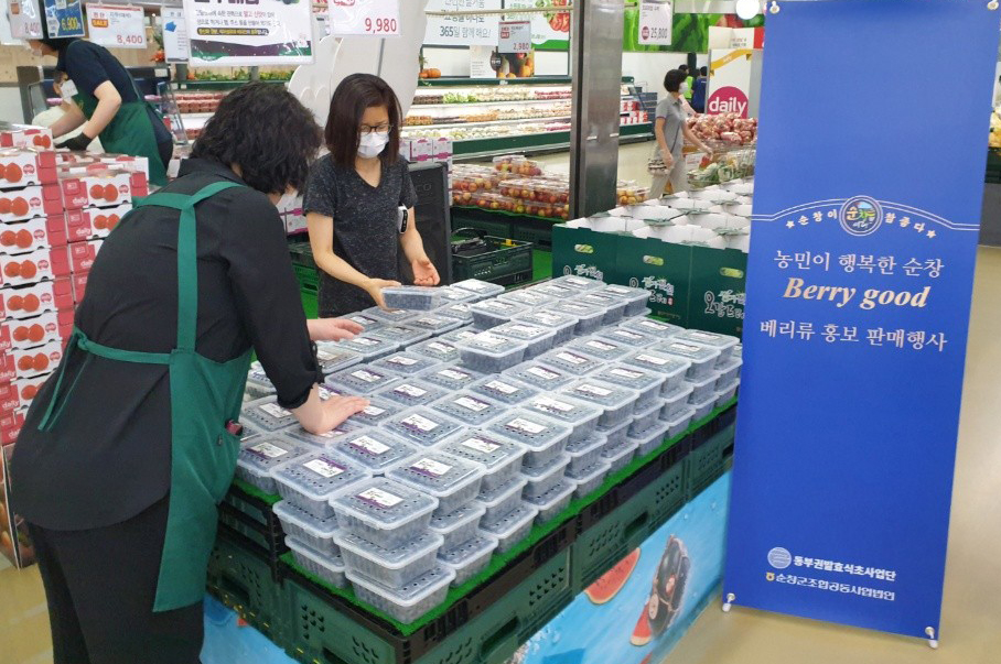 - 코로나19 확산으로 판로확보에 어려움을 겪고 있는 지역 농산물의 소비 진작을 위해 순창군과 지역 농협이 연계하여 특판행사를 추진한다. (재)발효미생물산업진흥원(이사장 황숙주)과 순창군조합공동사업법인(조합장 유광희)이 주관한 이번 행사는 지난 10일부터 13일까지 4일간 하나로마트 양재점과 수원 하나로 유통센터에서 동시에 진행한다. 지역 단위농협에서 공급받은 순창 특산품인 블루베리와, 오미자, 복분자 등을 판매할 예정이며, 생과 및 베리류 가공품 시식행사 등 다양한 이벤트를 활용해 수도권 소비자의 호응을 적극 유도할 계획이다. 유광희 조합장은 “이번 행사는 코로나19 장기화로 힘들고 지친 농가들을 위해 마련한 행사”라며 “위축된 관내 농업인을 위해 순창군과 협조하에 지속적으로 소비 촉진 행사를 추진할 것”이라고 밝혔다.