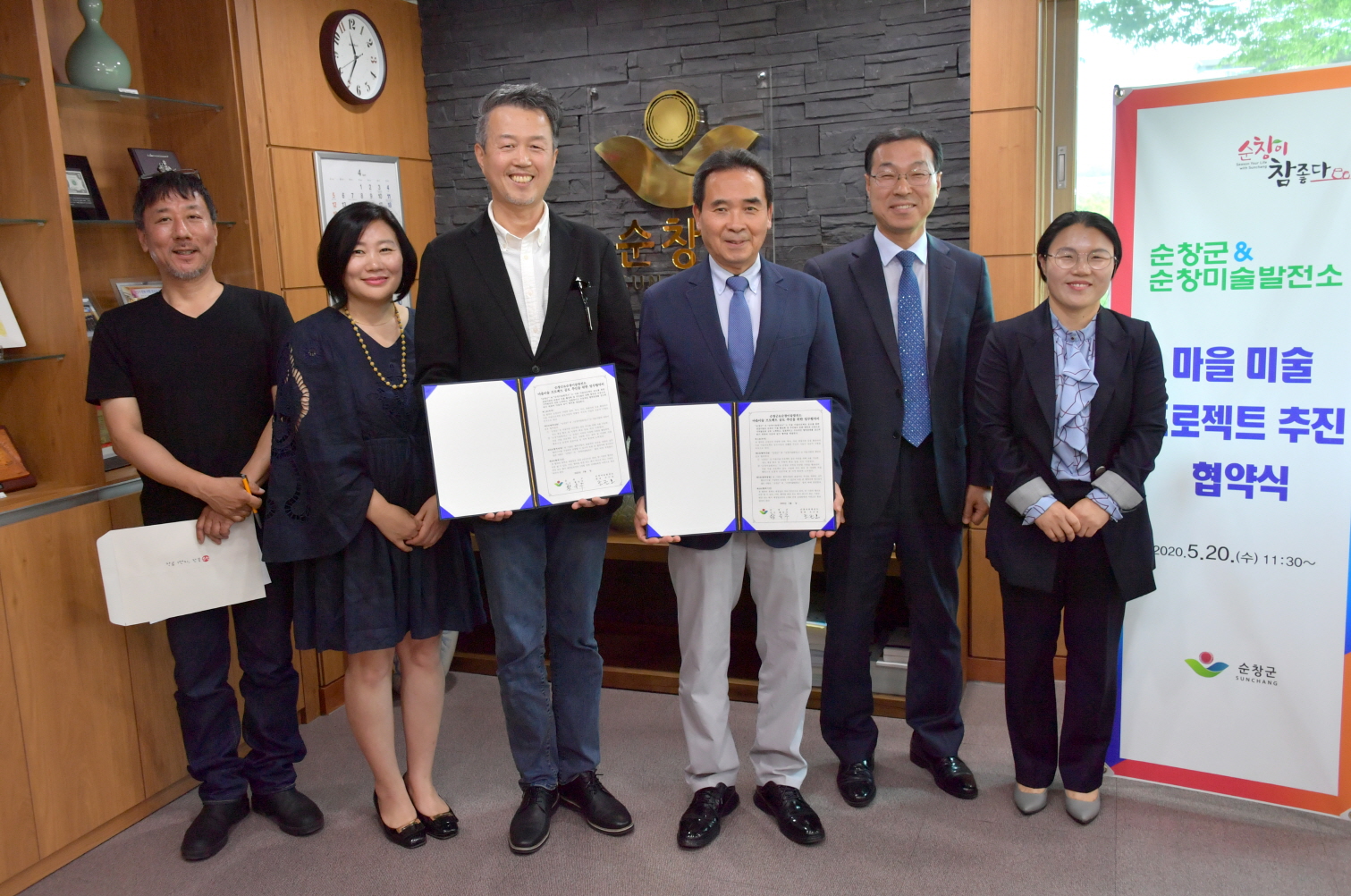 - 순창군이 마을미술 프로젝트 공모사업 선정을 위해 지역 문화예술인과 힘을 합쳤다. 군은 지난 20일 군청 1층 군수실에서 조근호 작가를 대표로 하는 순창미술발전소와 업무협약을 맺고 마을미술 프로젝트의 성공을 다짐했다. 이날 업무협약을 통해 군은 마을미술 프로젝트를 추진할 장소와 재원 확보 등을, 순창미술발전소는 지역의 다양한 자원을 활용해 공모사업에 적극적으로 응할 것을 약속했다. ‘마을미술 프로젝트’는 문화체육관광부가 주최하고 한국공예디자인문화진흥원이 주관하는 사업으로, 주민들의 문화 향수권 신장 및 건강한 예술마을 조성을 목적으로 한다. 이 사업은 지자체와 사업수행단체가 매칭되어 진행하는 것으로, 이날 협약을 맺은 순창미술발전소가 사업수행을 주관해 오는 6월 공모사업 신청에 대비할 계획이다. 사업수행을 맡은 순창미술발전소의 총 감독인 조근호 작가는 순창 출신으로 조선대학교 회화과와 동 대학원을 졸업해 광주에서 개인전을 열며 활발한 활동을 이어오고 있다. 이날 황숙주 순창군수는 “평범한 시골마을이 미술이라는 옷을 입게 되면, 마을 주민들 뿐 아니라 관광객에게도 순창만의 특별함을 선사할 수 있을 것”이라며, “섬진강 미술관과 출렁다리를 연계한 문화벨트를 조성하는데 있어 조 작가의 손끝에서 변화가 될 순창이 기대된다”고 밝혔다. 마을미술 프로젝트 공모사업은 오는 6월 신청을 거쳐 주관기관의 서류심사와 현장실사를 거쳐 7월 말에 대상지 발표를 앞두고 있다. 군은 이번 프로젝트를 통해 채계산 출렁다리부터 섬진강 미술관까지 예술적인 감성을 입혀 현재의 출렁다리부터 여행길을 새롭게 만들어갈 생각이다.