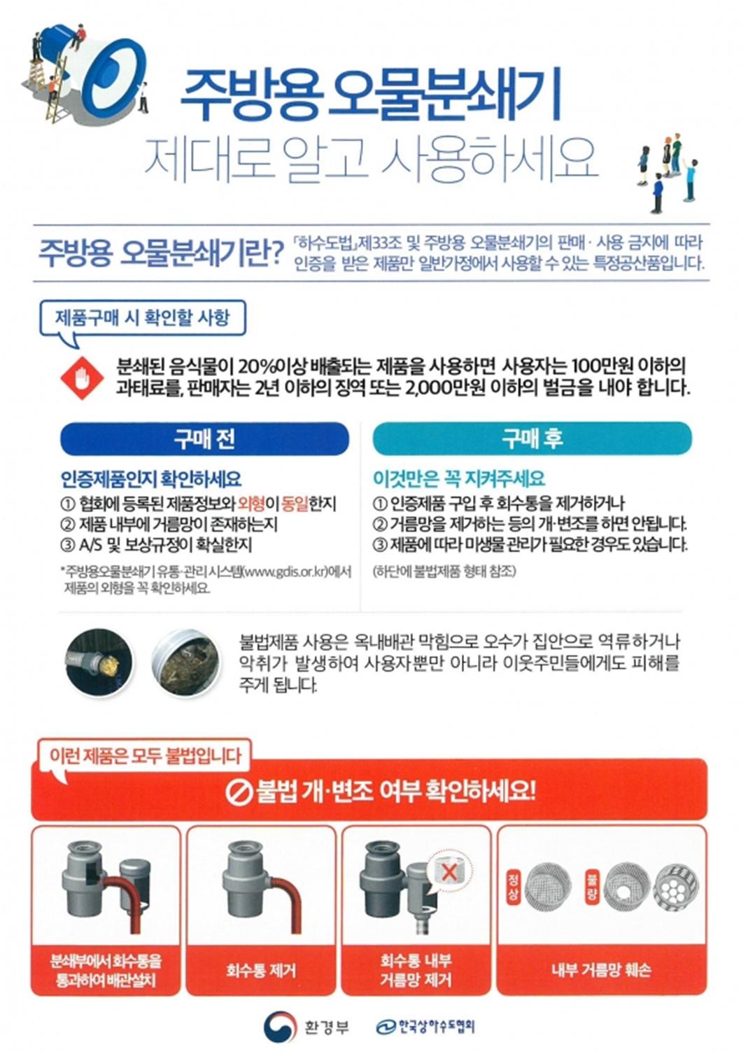 - 불법 주방용오물분쇄기 설치 주의 당부