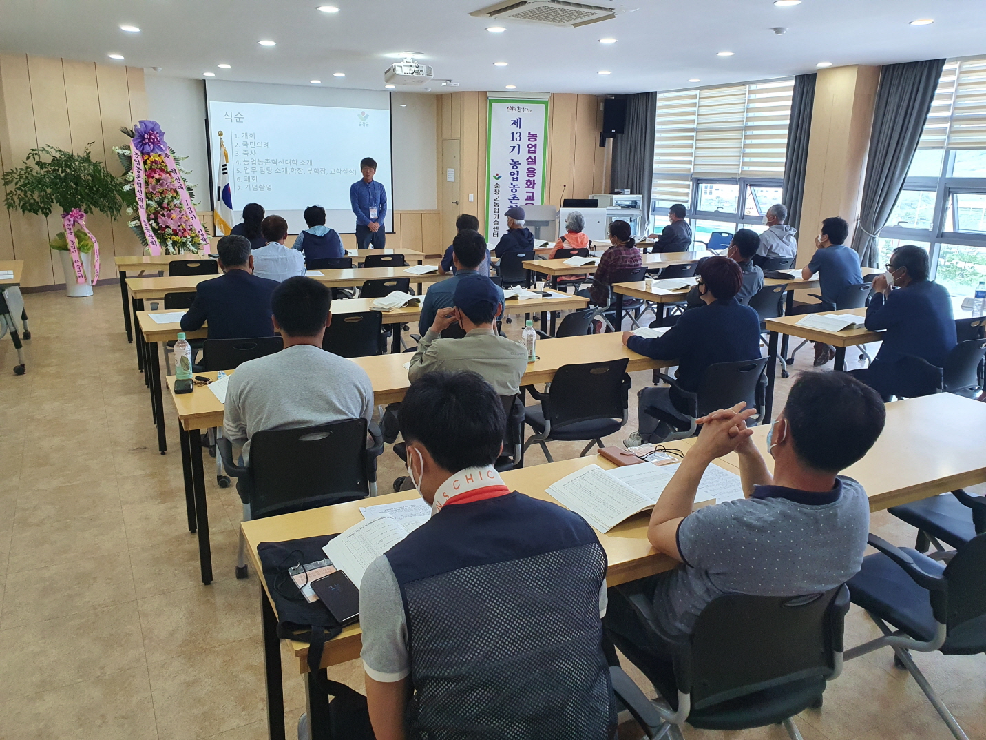 - 순창군농업기술센터는 지난 12일 2층 세미나실에서 교육생 26명이 참석한 가운데 저비용 고품질 다수확을 실현하는 농업인 육성을 위한 `농업농촌혁신대학` 13기 입학식을 갖고 본격적으로 교육을 시작했다. 순창군 `농업농촌혁신대학`은 급변하는 농업환경에 대처하고 지역농업발전을 선도적으로 이끌어갈 농업인을 위해 진행하는 교육이다. 오는 11월까지 전국의 전문 강사를 초빙하여 집합교육 19강좌, 실습교육10강좌, 현장교육 4강좌 등 총 33강좌를 진행할 예정이다. 순창군 농업기술센터는 양분관리, 병해충관리, 토양관리, 수분관리, 농기계사용교육, 홍보마케팅, 시설하우스 등 지역 농업의 저비용 고품질 다수확 실현과 관련된 내용으로 진행해 지역 리더를 육성할 방침이다. 농업농촌혁신대학은 코로나로 인해 당초 3월이었던 개강을 5월로 미뤄 시작한 만큼 코로나19 감염 방지를 위해 마스크 착용 권고와 체온계, 손소독제 등을 비치해 감염병 확산방지에도 노력할 계획이다. 한편, 지난해부터 소수정예화로 교육의 질을 높인 순창군 농업농촌혁신대학은 지난 2008년부터 지난해까지 총 481명의 농업 핵심인력을 배출하여 순창군 농업경쟁력을 향상시키고 고부가가치를 실현하는 최고 수준의 전문농업인을 양성했다. 올해 제13기 농업실용화교육반 또한 순창의 농업을 이끌 농촌 리더로 성장해 농업농촌혁신대학의 명성을 이어갈 것이다.