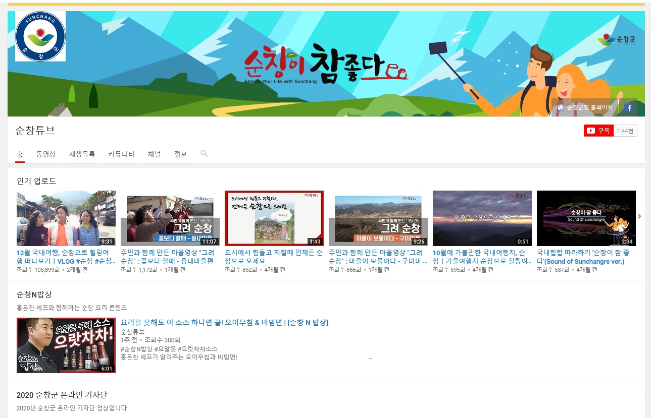 - 순창군이 지난해 10월 유튜브 채널인 `순창튜브`를 개설해 40여편 영상을 업로드하며 홍보에 열을 올리고 있다. 특히 지난 연말 제작된 `12월 국내여행, 순창으로 힐링여행 떠나기` 편은 조회수 10만을 넘어서는 등 높은 인기를 누리고 있다. 9분 30초 짜리 이 영상 한 편에는 관광, 숙박, 먹거리 등 보고 있으면 순창의 모든 곳을 다닌 것처럼 영상을 짜임새 있게 구성해, 보고 있는 이들로 하여금 한 번쯤 순창으로 오고 싶게끔 여행 자극을 불러일으키고 있다. 여기에 맛깔나는 순창의 음식들을 먹고 있는 출연진들의 모습을 보고 있자면 바로 달려가서 먹고 싶게 입맛을 자극하고 있다. 한편 최근에는 순창에서 새롭게 개발한 `순창 으라차차 소스`와 `순창톡톡 고추장소스`, `순창톡톡 간장드레싱`를 활용해 요리 레시피 영상을 제작해 유튜브 구독자들의 관심을 모으고 있다. 특히 국산 홍고추와 청양고추를 유산균으로 발효하여 톡특한 매운맛을 내는 `순창 으라차차 소스`는 지난해 순창세계발효소스박람회 당시 출시하면서 박람객들에게 이목을 집중시킨바 있다. 레시피 영상은 반찬가게 총각으로 소개하는 순창출신 홍은찬 셰프가 출연해 순창소스를 활용한 오이무침과 면 요리를 선보이고 있다. 특히 `순창톡톡 고추장소스`와 `순창톡톡 간장드레싱`를 활용한 면 요리는 20~30대 젊은 층들도 누구나 쉽게 집에서 따라할 수 있게 영상을 제작해 순창소스의 인지도 확대에도 크게 기여할 수 있을 전망이다. 군은 앞으로도 14명의 영상분야 온라인 기자단을 활용해 숨겨진 순창의 명소와 매력을 영상으로 담아내 전 세계 유튜브 구독자들을 찾아갈 계획이다. 조태봉 문화관광과장은 “앞으로도 순창의 관광지나 맛집 등을 연중 제작하여 순창만의 매력을 많은 사람들이 알 수 있도록 홍보에 주력할 계획”이라고 밝혔다. 이어 “개통이 한 달여 앞으로 다가온 채계산 출렁다리도 다양한 시각으로 제작해 새로운 관광명소로 거듭나도록 노력하겠다”고 덧붙였다.