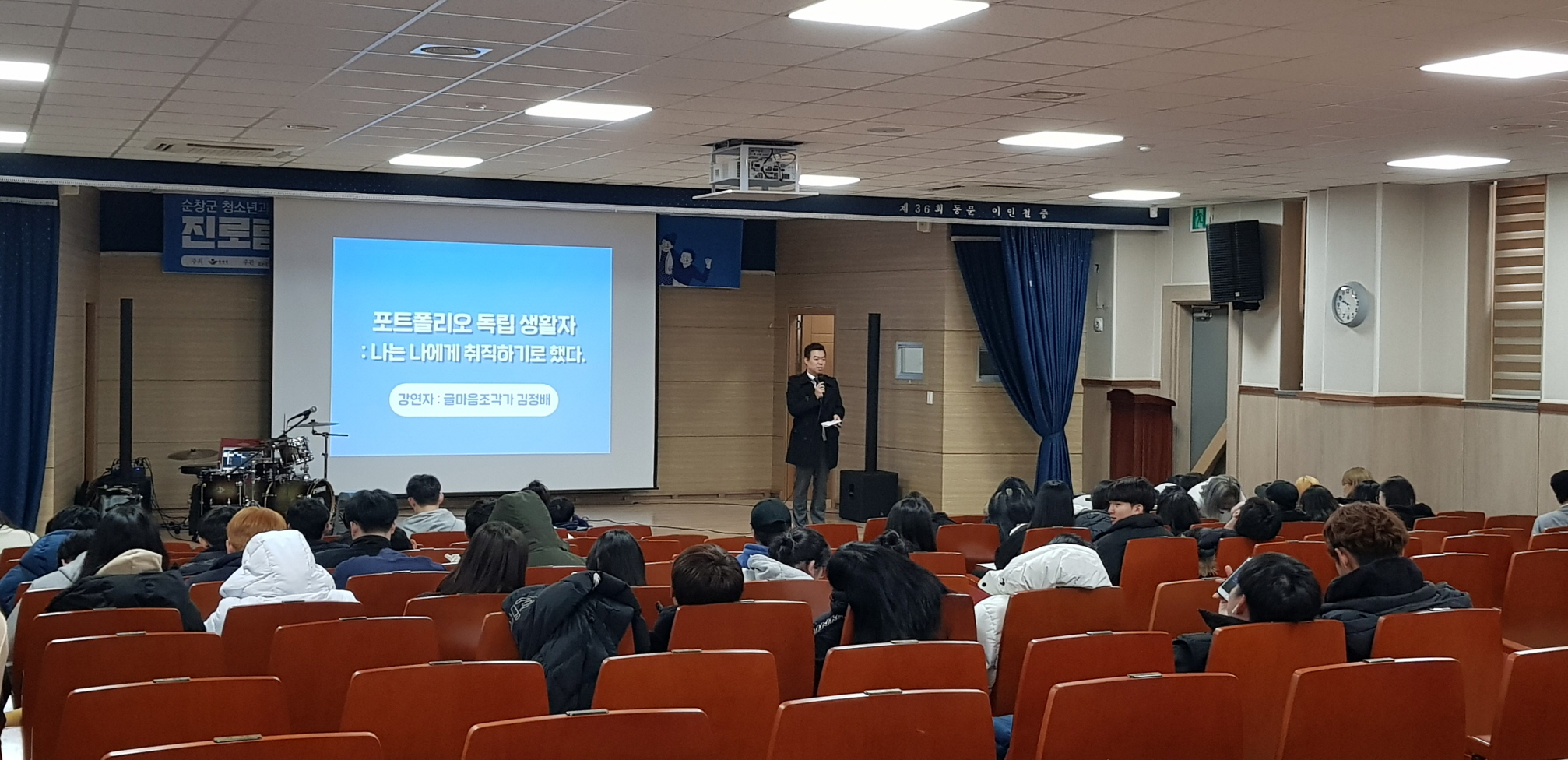 - 순창군이 지난 1년간 대학 진학을 위해 쉼 없이 달려온 고3 수험생을 위해 힐링의 시간을 마련했다. 군은 지난달 29일 수능을 마친 관내 고등학교 3학년 학생 200여명을 대상으로 관내 각 학교 강당에서 문화공연과 강연이 함께한 `진로탐색 톡톡 콘서트`를 열었다고 밝혔다. `진로탐색 톡톡 콘서트`는 대학교 진학을 앞두고 진로설계 등으로 고민이 많은 학생들에게 진로에 대해 고민을 함께 나눌 수 있는 진로탐색 특강과 학업에 대한 스트레스로 몸과 마음이 지친 청소년들을 위로하기 위한 연극과 음악콘서트로 구성했다. 이날 콘서트에 초청된 김정배 원광대학교 교수는 `포트폴리오 독립생활자`라는 신조어를 소개하며 “자신의 관심사를 다양화해 한 곳에 올인하지 말 것과, 자신의 정체성과 삶의 방향성이 확보되면 과감히 실천할 것"을 강조했다. 이어 순창 설화를 바탕으로 재구성한 음악창작극인 공연도 이어지며 그날 하루는 잠시나마 대학 입학에 대한 걱정을 잊고 다들 즐거운 시간을 보냈다. 또 지역 청년들과 재미있는 잡(job)담(談)의 시간도 마련해, 미래 직업으로 각광받는 크리에이터와 지역을 리더하는 청년농부들이 정보전달 중심의 진로교육에서 벗어나 학생들과 직접 소통하며 현실감 있는 사회 경험을 서로 공유했다. 음악과 함께 진행된 `진로 톡톡 콘서트`에서는 현재 가장 고민이 많을 고3 수험생들의 이야기를 들어주며, 서로에게 위로를 안겨주는 뜻 깊은 시간이 됐다. 군 양병삼 경제교통과장은 “강연과 음악공연을 통해 학생들에게 미래에 대한 두려움보단 스스로 미래를 설계하는 인생 설계자가 되어주길 바라는 마음으로 행사를 개최했다”면서 “학생들에게 군의 의도가 충분히 전달됐길 바란다”고 말했다. 한편, 군은 다음달 6일에도 관내 고등학교 3학년을 대상으로 “진로탐색 톡톡 콘서트”를 한차례 더 진행할 예정이다. 해당 게시물이 '사진으로 보는 군정'에서 이동 되었습니다.