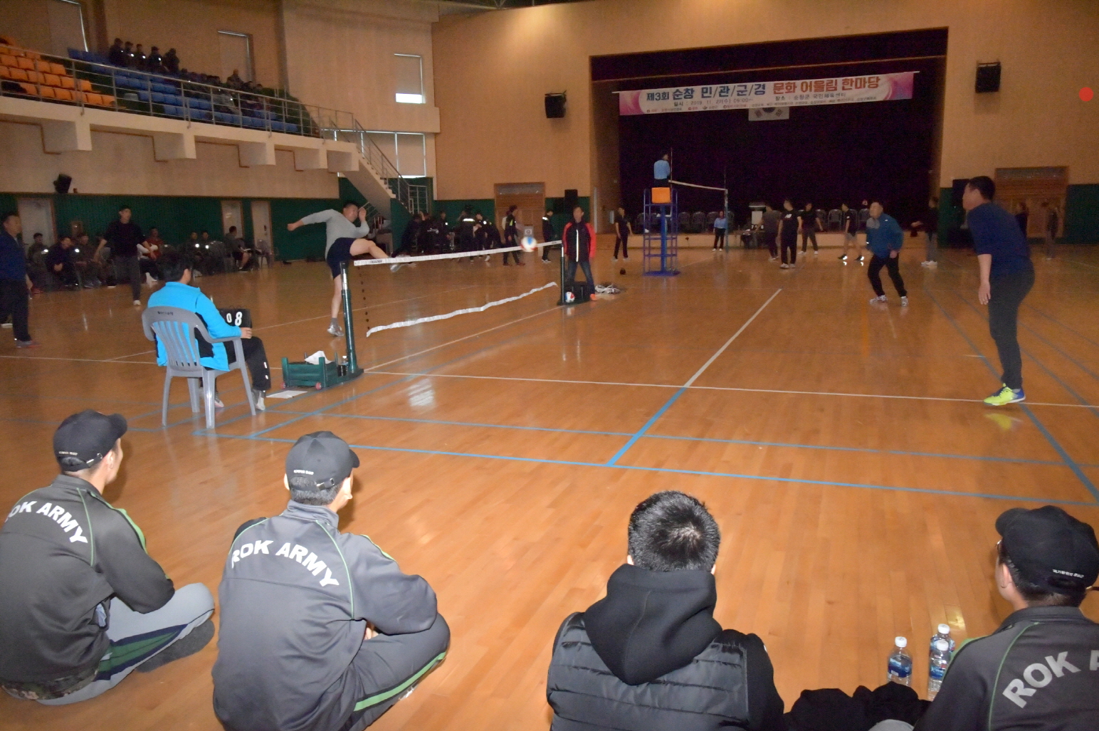 - 순창사암연합회(회장 동산스님)가 지난 27일 제3회 순창 민관군경 문화 어울림 한마당을 열고 올 한해 고생한 군인과 경찰, 사회복무요원의 노고를 치하했다. 순창군 국민체육센터에서 열린 이번 행사에는 순창군 관내에서 근무하는 군인과 경찰, 사회복무요원, 사암연합회 관계자 등 200명이 참석해 즐거운 시간을 가졌다. 올해로 3회째를 맞이한 이 행사는 군민을 위해 올 한해 고생한 군인과 경찰, 사회복무요원 등을 초청해 노고를 치하하는 시간을 갖고자 순창사암연합회가 주관하고 순창군이 후원해 매년 11월 열리고 있다. 이날 황숙주 순창군수, 정성균 의장도 이 행사에 함께하며 올 한해 군민의 안전을 위해 고생한 젊은 청년들의 노고를 격려했다. 황 군수는 “20대 젊은 나이에 사회를 위해 경찰과 군인이라는 무거운 짐을 지고 있는 여러분 노고에 다시 한 번 감사드린다”며 “오늘 하루 즐거운 시간을 갖고 올 한해 잘 마무리하길 바란다”고 전했다. 오전 9시부터 시작된 이날 행사는 체육활동을 시작으로 장기자랑까지 이어지며, 참가자들은 자신들의 숨겨온 끼를 방출하며 즐거운 하루를 보냈다. 행사를 주관한 동산스님은 “사회를 위해 헌신한 청년들에게 즐거운 시간을 주기 위해 매년 이렇게 자리를 마련하고 있다”면서 “앞으로도 이 행사가 계속 이어질 수 있도록 노력하겠다”고 밝혔다.해당 게시물이 '사진으로 보는 군정'에서 이동 되었습니다.