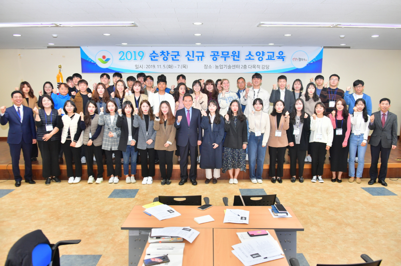 - 순창군이 지난 5일부터 3일간에 걸쳐 농업기술센터 교육장에서 올해 공직에 임용된 신규 공무원 46명을 대상으로 직무능력 향상과 공직사회 적응을 위한 진행한 위탁교육을 마무리했다. 이번 교육은 기획과 예산, 공무원의 의무·금지사항, 인사, 복무 및 문서작성 등 신규 공직자가 꼭 알아야 할 실무지식 습득과 함께 소통과 공감, 팀 워크, 자기계발 등 공직에 대해 이해와 업무 수행능력을 향상시키고 공직 사회 적응력을 높이고자 마련됐다. 또한 황숙주 군수는 교육장에 직접 방문해 공직자로서 명심해야 할 것을 강조하면서, “군민에게 봉사하는 마음가짐으로 순창에 대한 긍지를 가지고 능동적인 자세로 순창군에 활력과 변화를 이끌어달라”고 당부했다.교육에 참여한 신규 공무원은 “선배님들의 공직생활 노하우와 공무원으로서 알아야 할 업무의 기초를 폭넓게 접할 수 있었다”라고 소감을 밝혔다.한편 군은 이번 교육을 계기로 신규 공무원들이 공직자로서 새로운 마음가짐으로 공직 생활을 더욱 빠르게 적응할 수 있을 것으로 기대하고 있다.해당 게시물이 '사진으로 보는 군정'에서 이동 되었습니다.