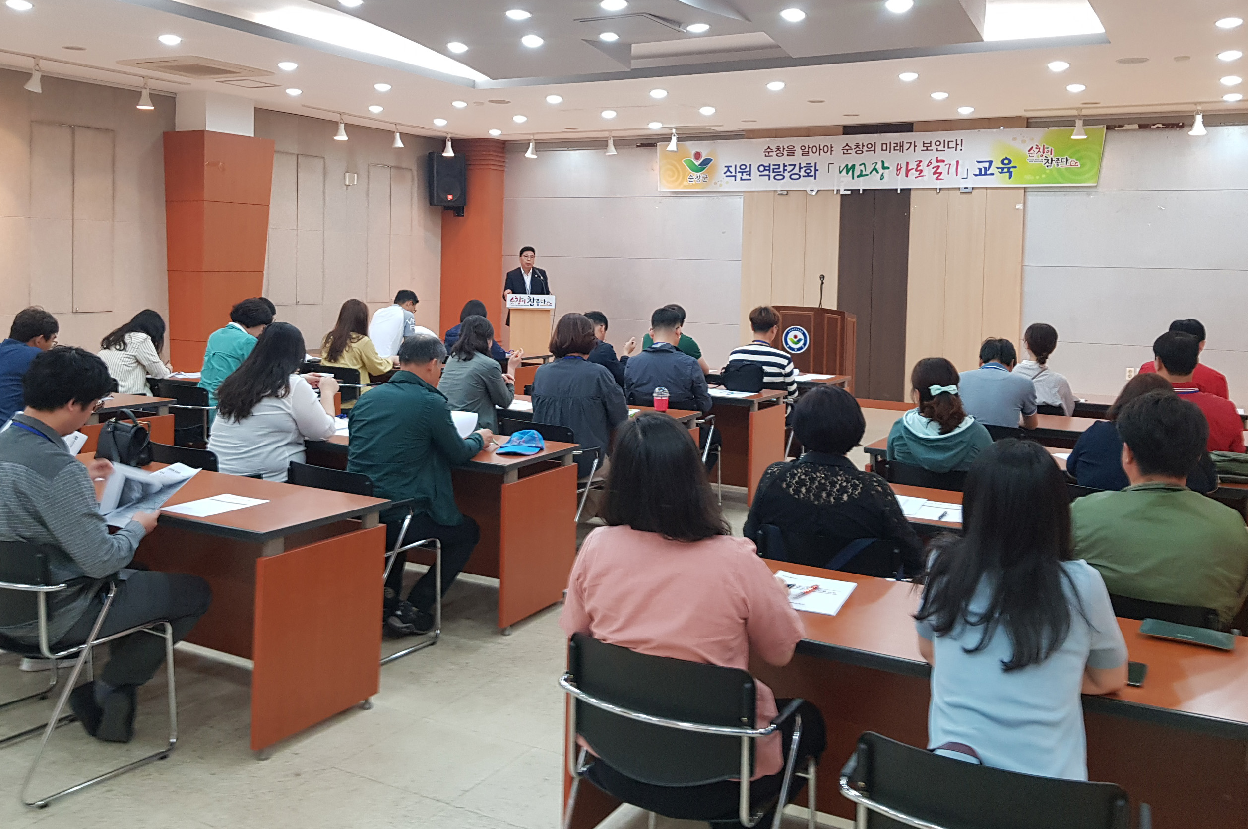 - 순창군 공무원들이 관내 주요시설 및 자원을 둘러보고 새로운 비전 개발에 나섰다. 군은 지난달에 이어 지난 23일부터 이틀간에 걸쳐 순창군 공무원 30명을 대상으로 관내 주요 사업장과 우수 문화시설을 탐방하는 `내고장 바로알기` 교육을 진행했다. 이번 교육프로그램은 군의 주요 사업과 자원에 대한 현장교육을 통해 군정 방향과 정책에 대한 이해와 함께 새로운 비전과 지역발전 방안을 모색하기 위해 마련됐다. 교육 첫 날인 23일에는 장난감도서관, 장류박물관, 구미마을, 용궐산 치유의 숲 등 6곳을 방문했다. 특히 순창군 대표 관광지인 용궐산 치유의 숲을 방문한 공무원들은 힐링 공간속에서 그 동안 쌓여온 스트레스를 푸는 동시에 새로운 도약을 꿈꾸는 순창군의 다양한 관광개발 정책들에 대한 논의를 이어갔다. 둘째 날인 24일에는 쉴랜드 조성이 한창인 건강장수연구소를 방문했다. 쉴랜드는 순창군이 치유관광을 표방하며 힐링을 테마로 건강장수연구소 일대에 방갈로를 비롯해 워터공원과 구절초 동산 등을 조성하는 힐링관광지다. 점심식사 후 이어진 일정에는 요즘 큰 인기를 끌고 있는 순창발효소스토굴을 방문해 새롭게 구축한 VR콘텐츠 체험과 발효커피 시음 등으로 순창을 대표하는 관광지를 둘러봤다. 군 관계자는 “순창군의 발전을 위해서는 공무원들이 지역에 대한 애착심이 있어야 한다”면서 “이번 교육을 통해 다양하고 획기적인 아이디어로 순창군 발전에 이바지할 수 있는 계기가 되길 바란다”고 전했다.해당 게시물이 '사진으로 보는 군정'에서 이동 되었습니다.