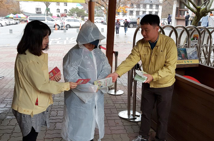 - 순창군이 지난 16일, 순창군민과 관광객을 대상으로 `제266차 안전점검의 날` 행사를 강천산에서 진행했다.이날 행사에는 공무원과 민간예찰단, 안전보안관 등 50여명이 참석했다. 군은 가을철 산불예방을 위해 주민들과 관광객들의 적극적인 참여를 당부했으며, 7대 안전무시 관행에 대해 안전의식을 다시 한번 강조하는 시간을 가졌다.특히 생활 속 안전 위험요소 신고 시스템인 안전신문고 앱의 설치와 신고방법을 안내해 주민들의 불편사항에 대해 조치가 이뤄질 수 있도록 홍보에 주력했다. 안전신문고는 학교안전, 생활안전 등 분야를 가지지 않고 주민 불편사항에 대해 신고가 가능하며, 모바일과 인터넷을 이용해 손쉽게 신고 가능하다.또한 연 2회에 걸쳐 안전신고 활동 우수자에 대해 심의위원회를 거쳐 포상금도 지급하고 있다. 한정안 안전총괄계장은 “안전불감증이 대형사고로 커지는 발단이 되는 만큼 안전수칙을 지키는 홍보활동을 강화해 군민들의 안전을 지켜나가겠다”고 말했다.해당 게시물이 '사진으로 보는 군정'에서 이동 되었습니다.