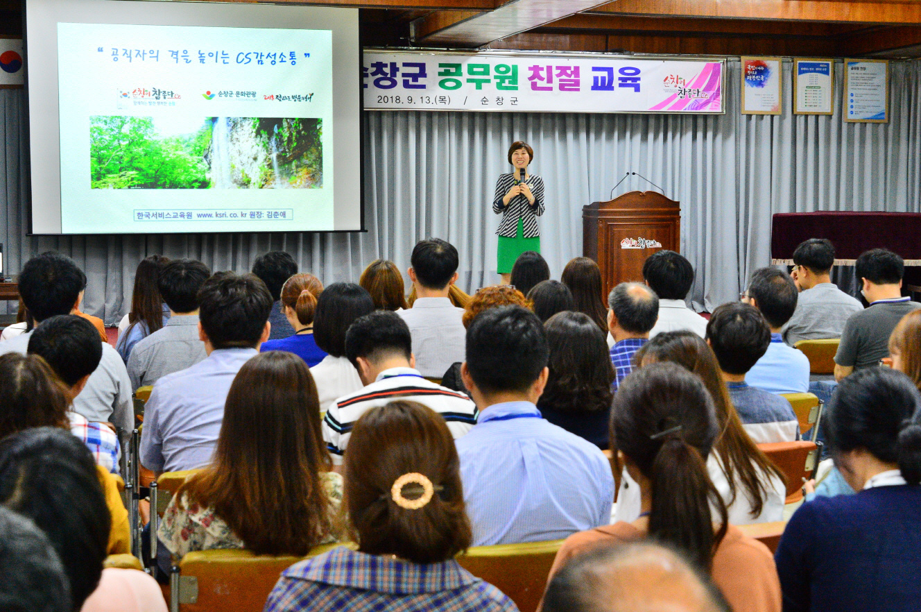 - 순창군은 지난 13일 군민이 감동할 수 있는 친절행정 서비스 제공을 위해 군 직원300명을 대상으로 친절교육을 가졌다. 친절교육은 신뢰받고 사랑받는 공무원으로 거듭나기 위해 “감성소통, 고객만족도 향상”이라는 주제로 김춘애강사(현, 한국서비스교육원 원장)의 강의로 진행됐다. 그동안 군은 급변하는 사회와 행정에 대한 군민들의 기대에 부응하기 위해 많은 노력을 기울여 왔다. 이번 친절교육을 통해 행정을 찾는 민원인에게 오감만족 친절을 선사함으로써 군민 감동 행정에 한걸음씩 다가가고 있다. 특히 이번 교육은 민원소통의 기본자세를 이해하고 민원조정능력 향상, 올바른 민원 응대 방법 등에 대해 공감의 시간을 가졌다. 갈수록 다양해지고 복잡해지는 민원인의 요구에 대한 대면 응대기법이나 전화응대요령, 악성민원 대처방법 등으로 강의가 진행돼 공무원들로부터 큰 호응을 얻었다. 또한 교육생들은 다양한 친절교육과 맞춤형 친절 모범사례도 공유해 군 친절도 향상을 위한 방안도 지속적으로 모색하기로 했다. 군 권재봉 행정과장은 ”행정과 공무원에 대한 주민들의 기대는 갈수록 커지고 있다“며 ”공직자가 갖추어야 할 기본 소양인 친절을 바탕으로 군민의 의견을 존중하며 공정하고 유연한 업무 처리를 한다면 민원 만족도가 한층 높아질 것으로 기대된다“라고 말했다. 한편, 교육에 참여한 직원들은 ”친절교육을 통해 적극적인 민원 응대 기법을 알 수 있었다“며 ”전국에서 제일 친절한 순창군이 되도록 더욱 노력하겠다“는 다짐을 밝혔다. 해당 게시물이 '사진으로 보는 군정'에서 이동 되었습니다.