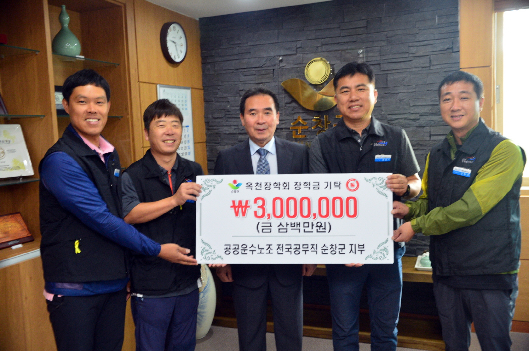 - 전국공공운수노조 공무직 순창군지부 옥천장학회에 300만원 기탁