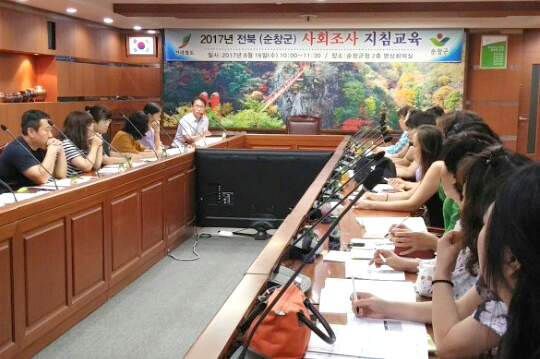 - 순창군이 오는 18일부터 31일까지 10일간 ‘2017년 전라북도·순창군 사회조사’를 실시해 균형 있는 사회정책 개발과 군민의 숨어있는 요구를 충족시키기 위한 기초자료로 사용한다. 이와 관련 군은 지난 16일 군청 영상회의실에서 조사요원 23명에 대하여 조사요령에 대한 교육을 실시하고 안전사고 없는 성공적인 조사를 다짐했다. 이번 조사는 관내에 거주하고 있는 가구 중 표본으로 추출된 800가구를 대상으로 여기에 상주하고 있는 만15세 이상 가구원에게 교육, 보건·의료, 주거·교통, 환경, 여가·문화, 안전 등 37개 공통항목과 함께 도 관심사 13개, 군 관심사 9개 항목 등 총 59개 항목을 면접 조사하게 된다. 군 관계자는 “수집되는 자료는 통계목적 이외에는 절대 사용하지 않고 「통계법」에 따라 그 비밀이 엄격히 보호된다” 며 우려하지 말 것을 당부하면서 “또한 조사요원이 가구를 방문할 때에는 조사원증을 패용하였는지 반드시 신분을 확인한 후 성실한 응답을 부탁드린다”고 말했다.그밖에 자세한 사항은 순창군청 기획실 평가통계계(063-650-1172)로 문의하면 된다.해당 게시물이 '사진으로 보는 군정'에서 이동 되었습니다.