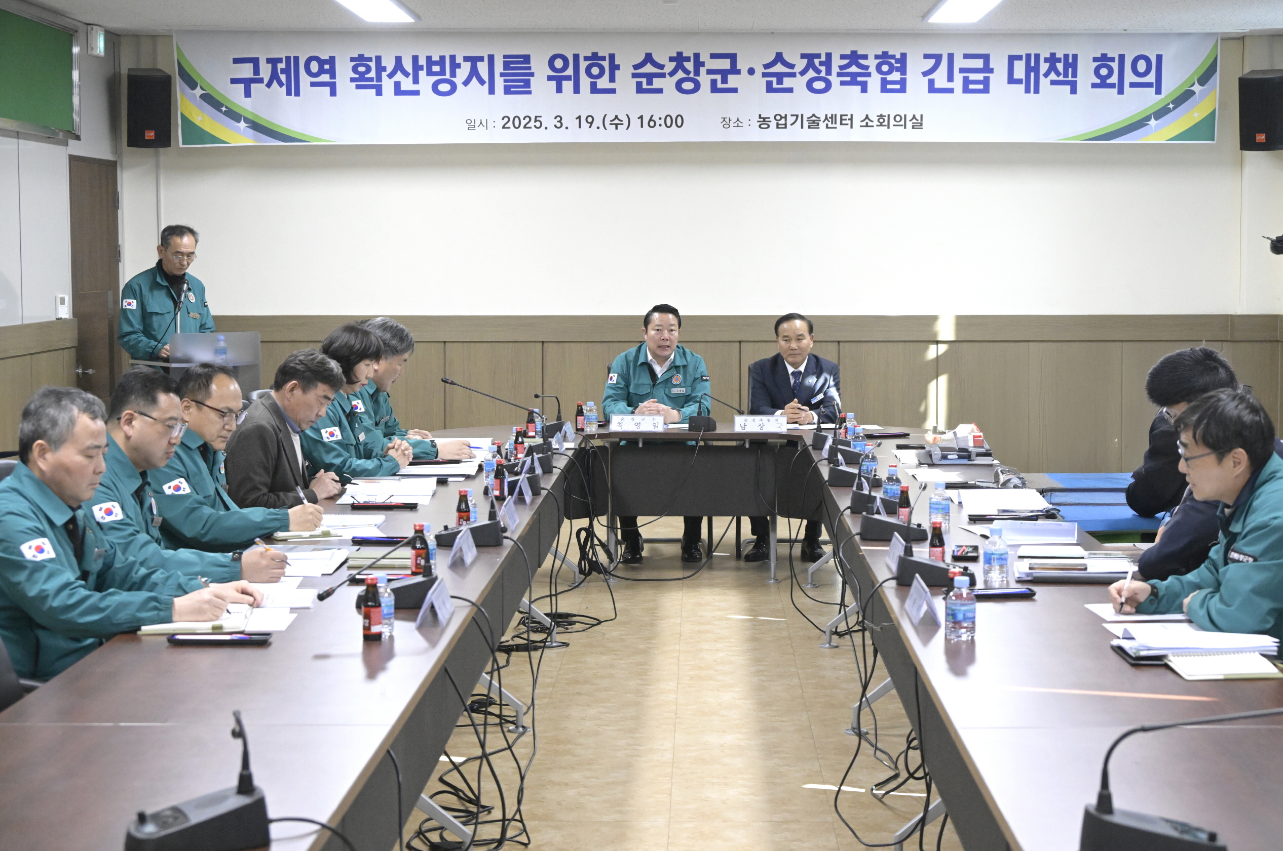 - 최영일 순창군수는 지난 19일 전남권에서 발생한 구제역 확산을 방지하기 위해 긴급 대책회의를 개최하고, 신속한 방역 조치와 농가 지원 방안을 마련하라고 강력 지시했다. 이날 회의는 농업기술센터 회의실에서 열린 가운데 최영일 군수를 비롯해 남상국 순정축협 조합장, 군 축산방역 부서장 및 담당자, 관계자들이 참석했다. 최 군수는“구제역은 축산업에 막대한 피해를 초래할 수 있는 만큼 과하다 싶을 정도의 과감하고 신속한 초기 대응이 중요하다”면서“인근 지역에서 발생한 구제역이 순창군으로 확산되지 않도록 모든 행정력을 집중하겠다”고 강조했다. 이날 회의에서 최 군수는 신속한 방역 대응을 위해 ▲ 방역 비상 상황실 운영 ▲ 차단방역 거점소독시설 운영 ▲ 백신 일제접종 ▲ 소독 시설 및 방역 물품 지원 ▲ 축산농가 홍보 등 대책에 대해 직접 회의를 주재했다. 특히, 축산 농가의 방역 체계를 철저히 점검하고, 소독 시설의 정상 가동 여부를 신속히 확인하도록 했다. 군은 방역 인력이 부족한 상황을 고려해 행정 인력을 적극 투입하고, 축산 농가의 소독시설 점검과 함께 방역 홍보도 할 계획이다. 무엇보다도 차단방역 거점소독시설 운영을 가장 강조했다. 최 군수는“전남권에서 발생한 만큼 군 경계에 있는 옥과, 담양에 신속한 차단방역 시설 설치가 필요하다”라며,“가능한 모든 수단을 활용해 최대한 빠른 시일 내에 24시간 방역이 이루어질 수 있도록 조치하라”고 지시했다. 회의에서 구제역 백신 접종의 중요성도 강조됐다. 최 군수는“구제역 백신 면역 형성에는 일정 시간이 소요되므로 최대한 빠르게 접종을 완료해야 한다”며 “금주 안에 백신 접종을 신속히 마무리할 수 있도록 총력을 기울여 달라”고 지시했다. 또한, 도축장 교차 감염을 차단하기 위해 전남권 도축장 이용을 자제하고 이에 대한 대책 마련을 주문했다. 한편, 순창군은 농업기술센터에 방역 비상 상황실 운영을 상황 해제 시까지 운영하고, 추가적인 상황 발생 시 즉각 대응할 수 있도록 비상 연락 체계를 가동할 계획이다.