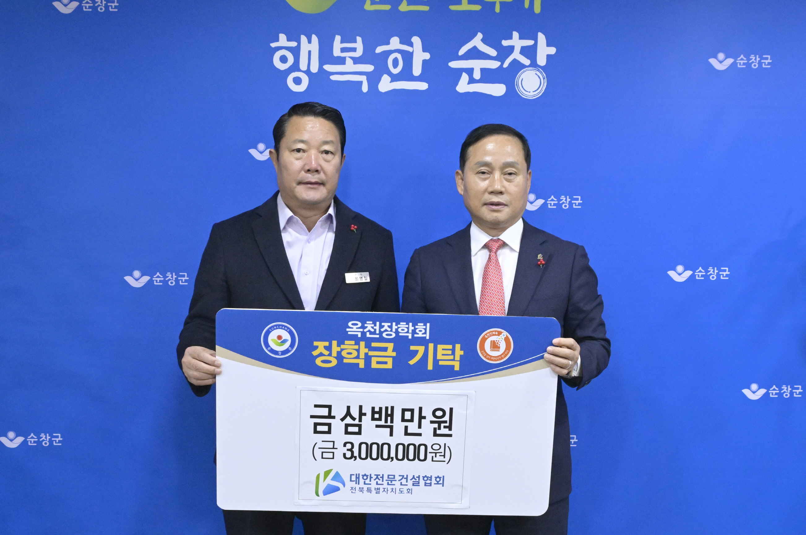 - 대한전문건설협회 전북특별자치도회, 순창군 옥천장학회에 장학금 300만원 기탁