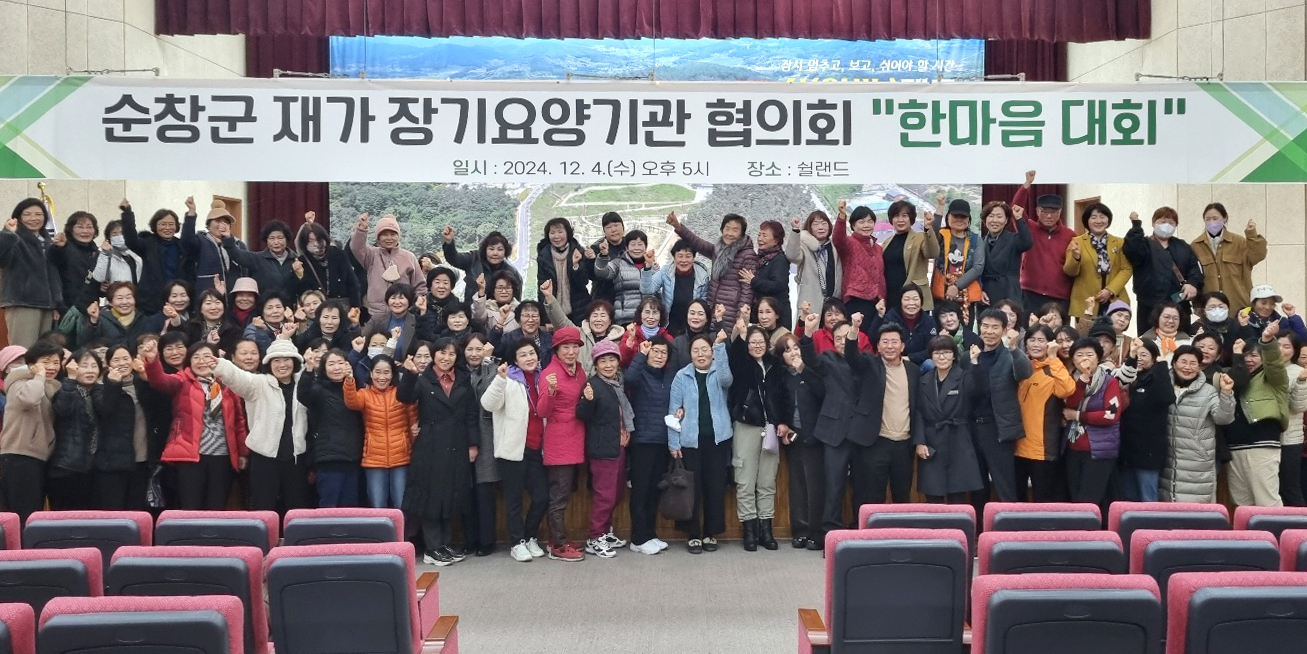 - 순창군 재가장기요양기관협의회(회장 차유성)은 지난 4일 순창 쉴랜드에서‘제3회 순창군 재가장기요양기관 한마음대회’행사를 개최했다고 밝혔다. 재가장기요양기관 종사자들의 노고를 위로하고 사기를 드높이기 위해 기획된 이번 행사에는 최영일 순창군수를 비롯해 관내 재가장기요양기관 종사자 등 150여 명이 참석했다. 이날 참석자들은 요양기관 종사자들의 애로사항을 공유하고 발전방향을 논의하는 뜻깊은 시간을 가졌다. 차유성 회장은 대회사를 통해“제3회 한마음대회에 참석해 주신 모든 분들께 진심으로 감사드린다”면서“오늘을 계기로 관내 장기요양기관들이 서로 교류하고 화합해 양질의 돌봄서비스 제공에 힘쓰자”며 참석자들에게 격려의 뜻을 전했다. 최영일 군수는“돌봄서비스 최일선에서 애쓰시는 모든 분들의 봉사와 헌신에 감사드린다”면서“앞으로도 요양보호사, 사회복지사를 비롯한 사회복지시설 및 장기요양기관 종사자들의 처우개선을 위해 최선의 노력을 다하겠다”고 밝혔다.