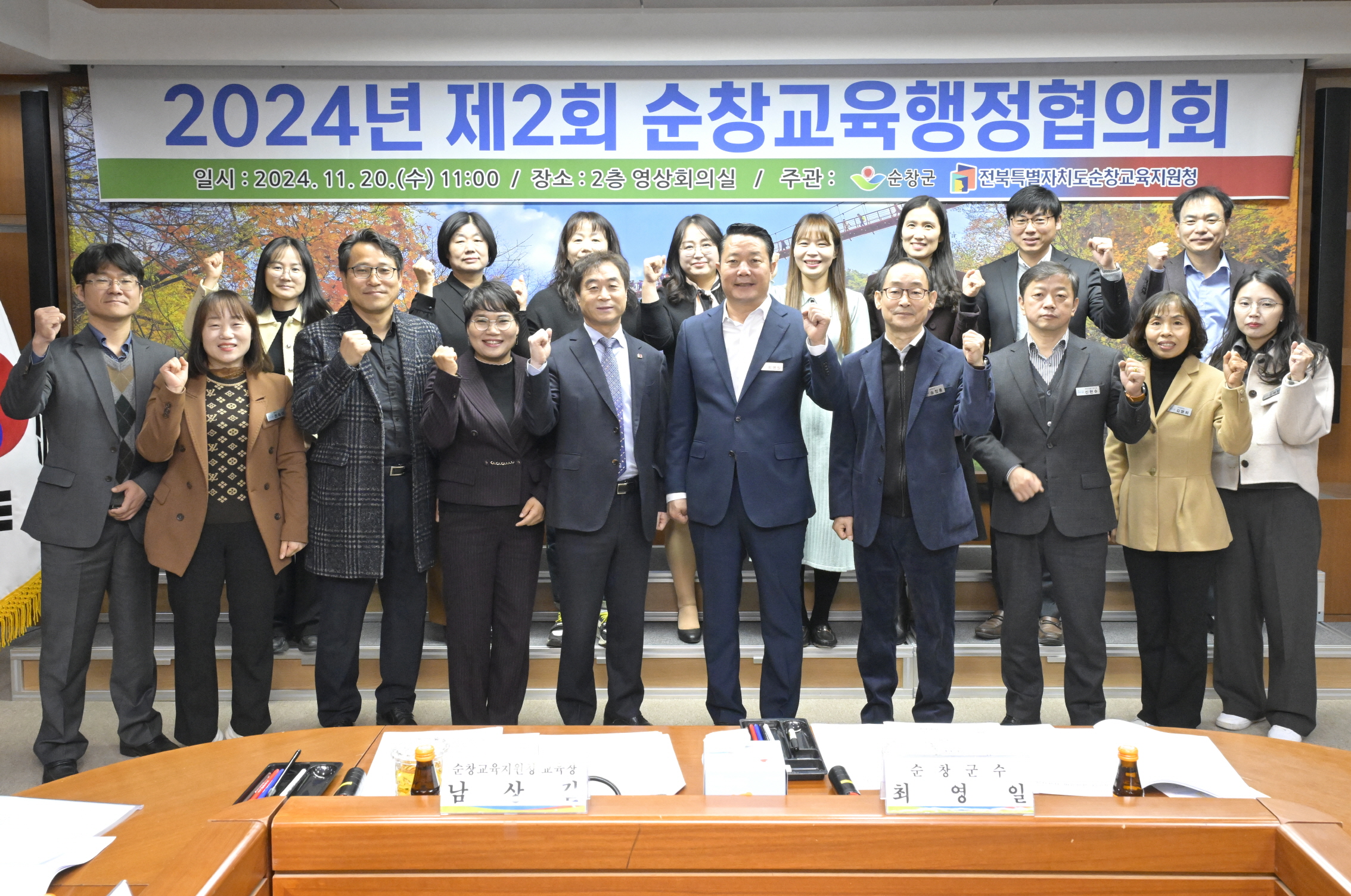 - 순창군이 순창교육지원청과 함께 지난 20일 군청 2층 영상회의실에서 제2회 순창교육행정협의회를 개최했다고 밝혔다. 이번 협의회에서는 2025년도 교육경비 예산안과 농촌유학 활성화 방안을 논의했으며, 교육발전특구 시범지역 사업추진 현황을 공유했다. 특히 양 기관의 협업으로 교육부 공모사업에 선정된 '창의예술 미래공간' 업무 실시 협약식도 함께 진행됐다. 군과 교육지원청은 지난해부터 교육행정협의회와 농촌유학 합동 설명회를 번갈아 개최하며 교육 분야를 비롯한 다양한 영역에서 협력체계를 구축해 왔다. 뿐만 아니라, 이날 협의회에 맞춰 순창교육청 직원 29명이 고향사랑기부금 300만원을 기탁하며 지역발전에 대한 의지를 보였다. 남상길 교육장은“순창 교육 발전을 위해 순창군의 지속적인 협력과 지원을 해주시는 최영일 군수님께 감사드린다”면서,“특히 오늘 논의된 다양한 교육협력 안건들이 실행될 수 있도록 순창군과 함께 최선을 다하겠다”고 전했다. 최영일 군수는“지역 인재 육성을 위해 힘쓰시는 남상길 교육장님과 교육청 관계자분들의 노고에 감사드린다”면서“앞으로도 교육협력체계를 강화하고 다양한 분야를 지원해 순창 교육 발전에 최선을 다하겠다”고 화답했다.