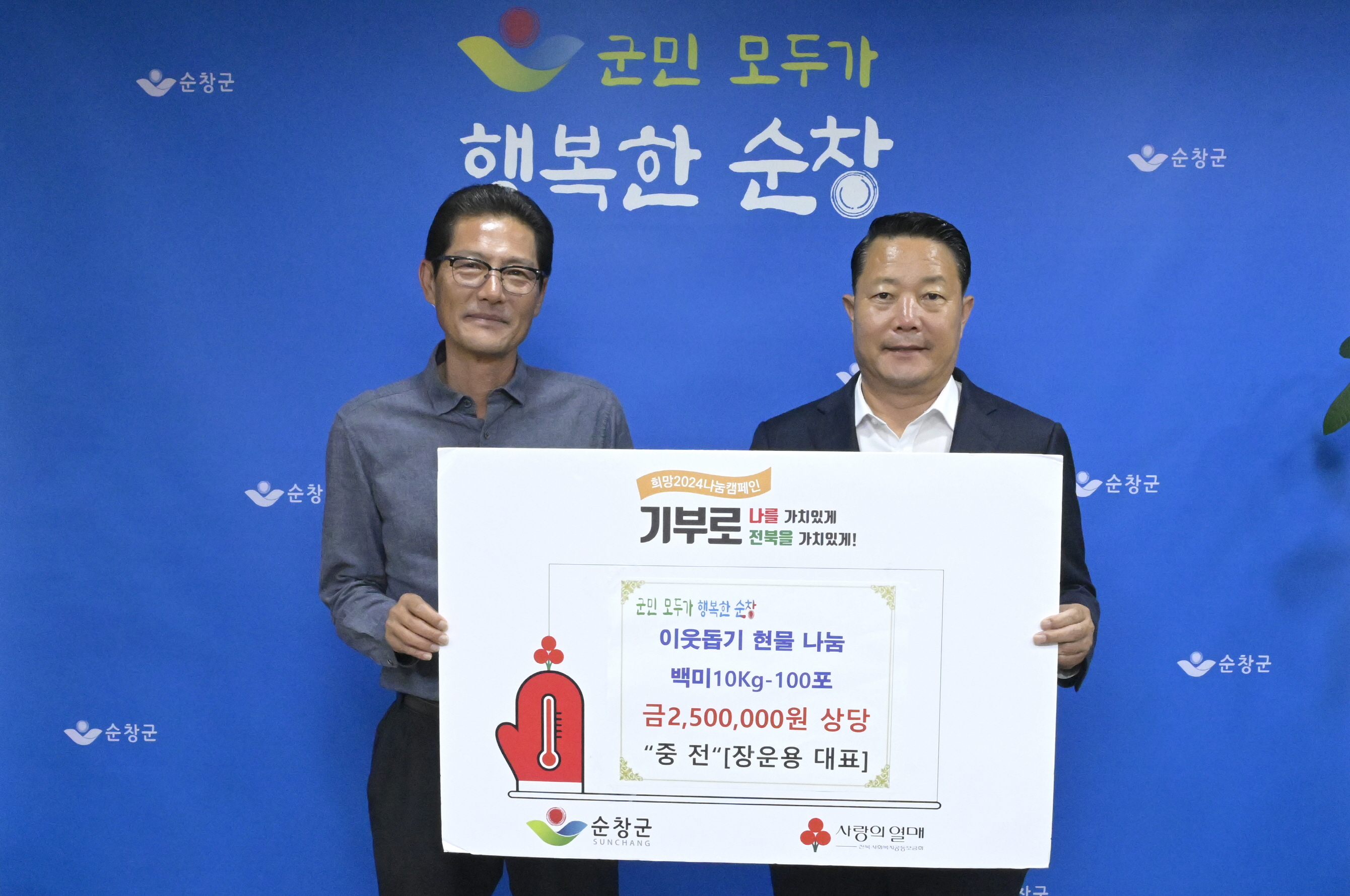 - 중전 장운용 대표, 순창군에 250만원 상당 백미 100포 기탁