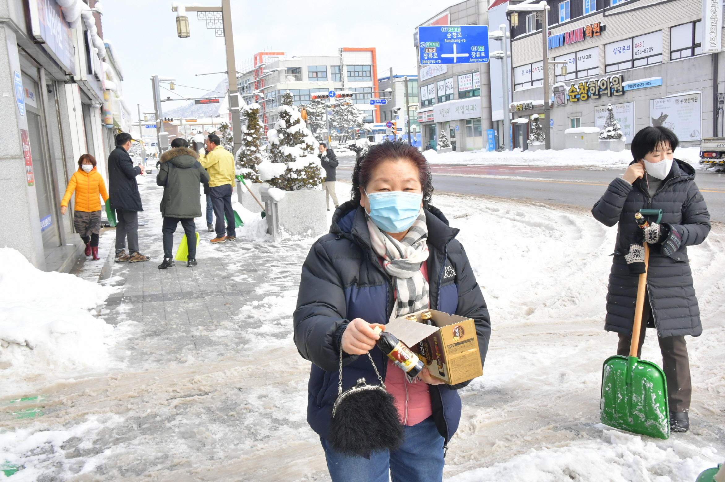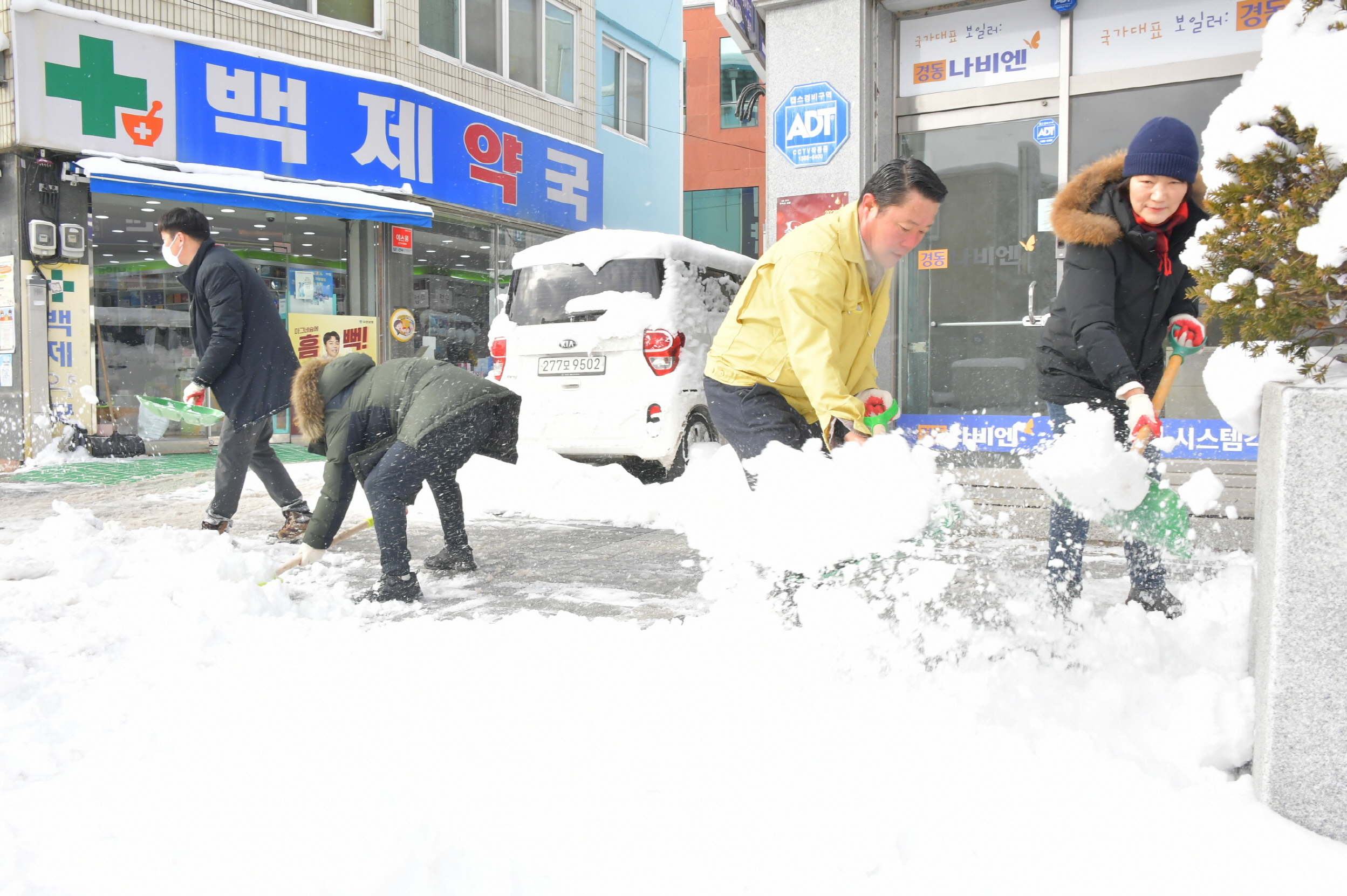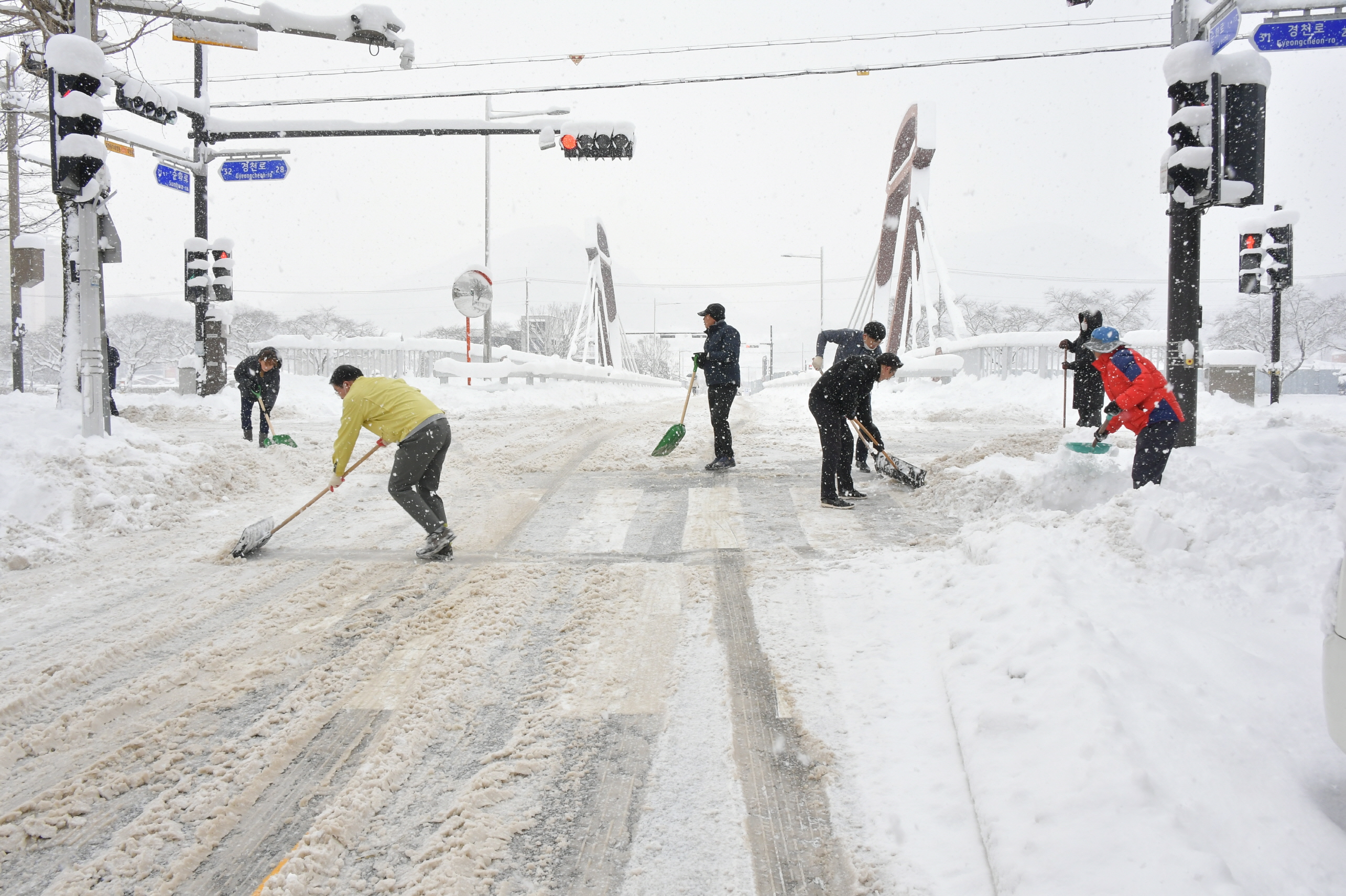 - 신정이 군의장, 제설작업 동참