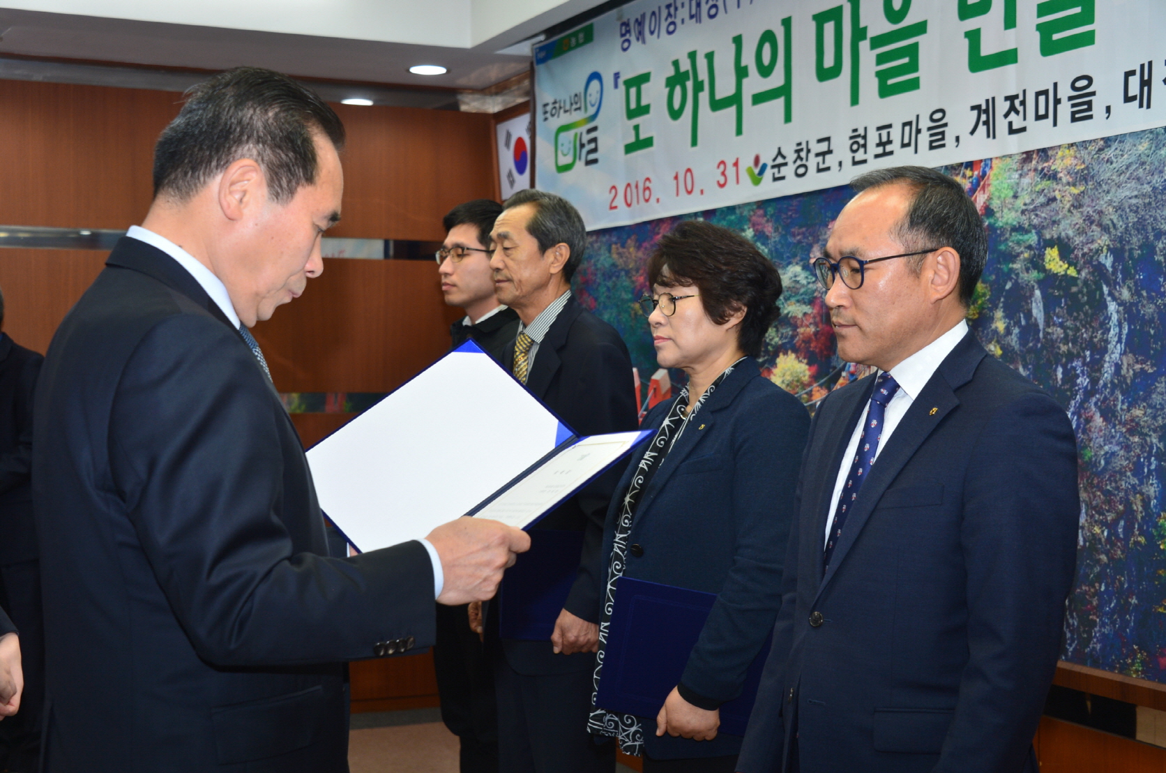 - 순창군(군수 황숙주)과 농협중앙회 순창군지부(지부장 한재현)는 지난 31일 순창군 영상회의실에서 기업대표, 마을이장 및 주민 등 30여명의 관계자가 참석한 가운데 명예이장 위촉식을 진행했다.이날 위촉식은 농촌에 새로운 활력을 불어넣기 위한 ‘또 하나의 마을 만들기’사업 일환으로 추진된 행사며 이자리에서 황숙주 군수는 이상주 대상(주) 순창공장 공장장을 금과면 계전마을이장으로, 이종규 토박이순창식품(주) 대표이사를 순창읍 대정마을 이장에, 김미자 NH농협손해보험 전북총국장을 구림면 봉곡마을 이장으로, 한재현 농협중앙회 순창군지부장을 동계면 현포마을의 명예이장으로 각각 위촉했다.지자체의 협조 아래 농협에서 추진하고 있는‘또 하나의 마을 만들기’사업은 기업대표 기관장 등을 농촌마을의‘명예이장’으로 위촉하고 소속 임·직원을 ‘명예주민’으로 참여시켜 점차 활력을 잃어가는 농촌마을에 농촌 일손을 돕고 지역농산물 소비에 힘을 보태는 등 함께 성장 발전하는 도농협동의 새로운 모델을 창조하는 운동이다.위촉된 명예이장들은 해당마을과 정기적이고 지속적인 교류와 함께 농촌일손돕기, 마을농산물 팔아 주기, 마을숙원사업 지원 등 농촌마을에 새로운 활력을 불어넣는 다양한 활동을 전개 할 예정이다.황숙주 군수는“마을 명예이장으로 응해주신 대표님들에게 깊은 감사를 드린다”며 “앞으로 마을 이장, 주민과 손 잡고 진심으로 농촌을 이해하고 서로 교류 발전해 나가길 기원한다‘고 말했다.한재현 지부장은“순창지역 농촌마을 활력을 불어넣기 위해 앞으로도 지속적으로 또 하나의 마을 만들기 운동을 확대 추진 하겠다”며 “ 많은 기업체와 단체에서 함께 동참해 줄 것을 희망한다”고 말했다.해당 게시물이 '사진으로 보는 군정'에서 이동 되었습니다.