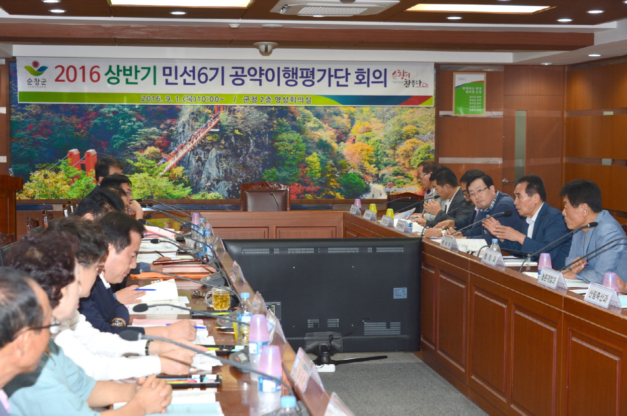 - 순창군이 민선 6기 8개분야 44개 공약사업 이행율 91%를 나타내며 군민과의 약속이행에 가속도를 내고 있다.군은 지난 1일 군청 영상회의실에서 공약이행 평가단 회의를 개최하고 민선 6기 공약 추진상황 점검 및 변경사항에 대한 안건을 처리했다.이번 회의에는 내·외부 위촉위원 10여명과 소관부서장 15명 등 30여명이 참여해 공약 세부사업에 대한 보고를 받고 이에 대한 토론을 진행했다.이날 보고 내용에 따르면 군은 지금까지 총 8개 분야 44개 사업 중 13개 사업을 완료했고, 27개 사업은 정상 추진 중이다. 2개 사업은 미착수 중이고 2개 사업은 보류상태다. 완료사업과 정상추진사업을 포함한 정상추진율이 91%로 높게 나타났다. 이날 회의에서는 정부의 유사 중복 사회보장사업 정비 지침 등 정부정책 및 행정환경의 변화에 따라 부득이 지속추진이 어려운 사업에 대해서 변경사업을 발굴하고 폐기하는 공약사업에 대해 집중 논의가 이뤄졌다.변경 안건은 2건이다. 공약이행 평가단은 우선 정부 사회보장사업 관련 유사 중복사업 정비 지침에 따라 보건복지부가 산후조리원 이용료 지원사업을 폐지하고 출산장려금 지원 확대를 권고함에 따라 산후조리원 이용료 지원사업을 출산장려금 확대로 변경하기로 의결했다. 또 지난 회의시 사업 보류를 확정했던 취학 전 아동 야간보육센터 확대 운영건에 대해서는 최종 폐기하기로 결정했다. 평가단은 취학전 아동 야간보육센터 확대운영은 (구)보건의료원 노인요양병원 기능 전환사업 추진이 중단돼 공간마련이 어렵고 지역 여건상 추진이 불가능해 최종 폐지한다고 이유를 밝혔다. 이날 평가단은 “공약사업은 군민과의 약속인 만큼 사업 추진 시 소통을 강화해 군민에게 이익을 주는 결과가 나왔으면 한다“ 며 “정상 추진 사업을 빠른 시일내에 마무리 지을 수 있도록 추진에 노력해 달라”고 당부했다. 해당 게시물이 '사진으로 보는 군정'에서 이동 되었습니다.