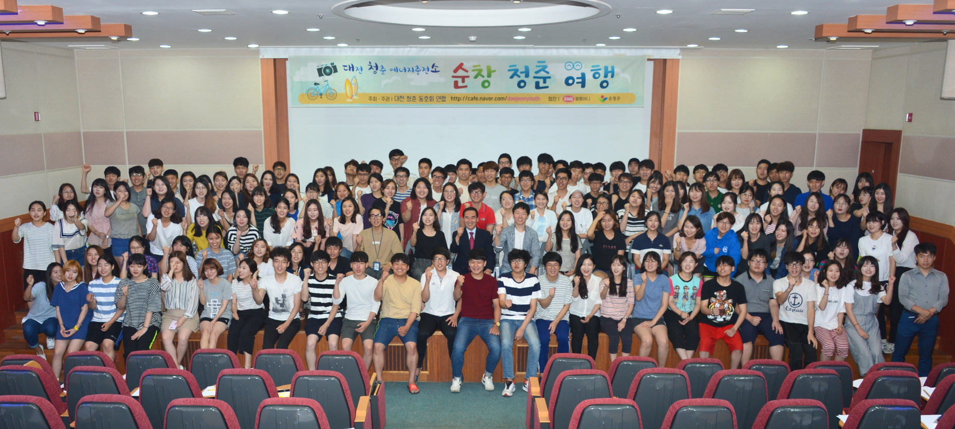 - 대전지역 대학생 동호회 연합모임인 ‘대전 청년에너지 충전소’회원 200여명이 지난 14일에서 15일 까지 1박 2일간 순창을 알기위한 문화탐방에 나섰다.이번 대전지역 대학생들의 문화 탐방은 최근 코레일 대전 충남본부와 업무협약을 체결하는 등 충청권 관광객 유치를 위해 노력하고 있는 가운데 진행된 행사로 의미가 크다. 특히 대전 청년에너지 충전소는 대전지역에서 활동하고 있는 다양한 동호회원들의 연합체로 봉사활동과 건전 선거를 위한 공익 활동 등을 진행하고 있다. 회원수가 2,000여명이 넘는 단체로 군은 대전지역에 순창을 홍보하는데 큰 도움이 될 수 있을 걸로 기대하고 있다.이번문화탐방은 순창지역의 대표적 관광지인 강천산과 고추장민속마을 방문을 통한 장류체험 알기에 초점이 맞춰졌다. 회원들은 강천산을 방문해 각자 주어진 미션에 따라 사진을 찍고 또 장류체험관에서 순창전통장류에 대해 배우고 체험하는 순서로 진행됐다. 특히 황숙주 군수가 직접 순창군의 지리와 역사, 주요관광지에 대해서 자세한 설명을 진행해 참석자들에게 큰 호응을 얻었다.황군수는 “순창은 호남권의 배꼽에 해당되는 곳에 위치할 정도로 호남의 중심지역이다” 면서 “특히 섬진강 줄기 중에 가장 아름다운 구간인 동계 장군목과 풍산 향가 유원지는 기암괴석과 주위의 풍경이 조화를 이루며 천혜의 비경을 간직한 곳이다”고 설명했다. 이어 “순창은 또 다양한 역사와 문화의 숨결이 숨쉬는는 지역이다” 며 여암 신경준 선생의 실학 전신이 잘 담긴 훈민정음 운해를 비롯해 귀래정 도 있고 조선 전기의 문신 김정 등이 중종의 폐비 신씨의 복위를 청하는 상소를 작성한 삼인대 등 다양한 문화가 살아 있는 순창을 느끼고 배워가길 바란다“고 말했다.군은 앞으로도 젊은 층 들이 순창을 방문할 수 있도록 유도하는 프로그램을 만들어 500만 관광시대를 열어 간다는 방침이다.해당 게시물이 '사진으로 보는 군정'에서 이동 되었습니다.